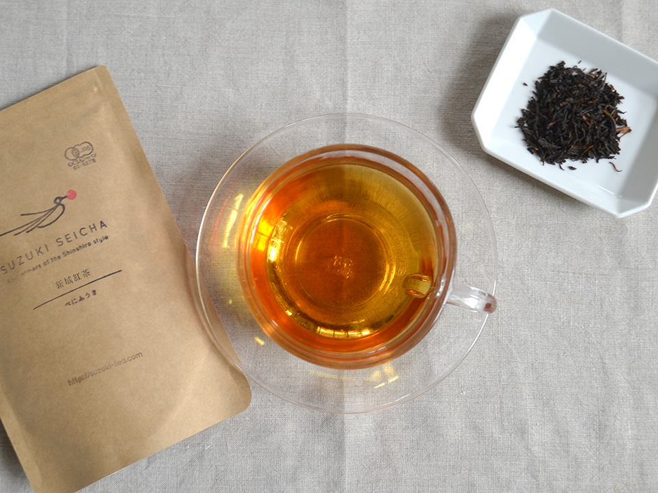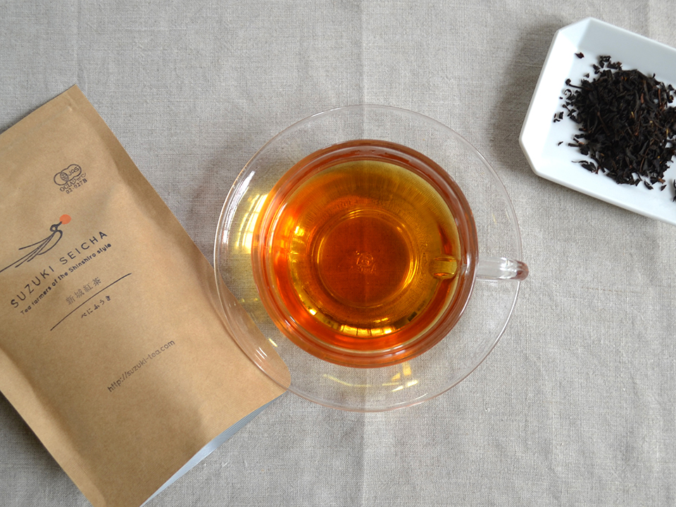 緑茶用品種で作られた紅茶。水色(抽出液)は赤褐色で、柔らかく爽やかな味わいが特徴です。
