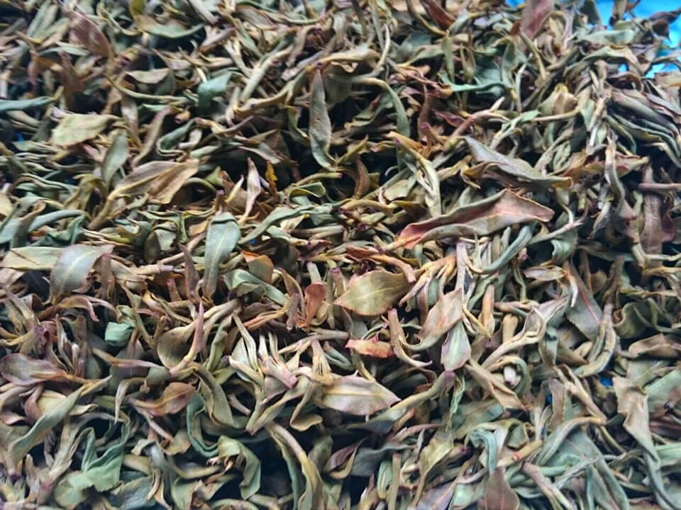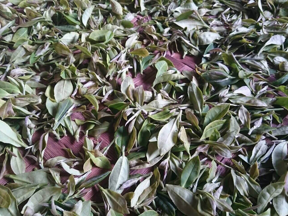茶葉を広げて30分~2時間ほど、静置します。その日の天気、気温、湿度に合わせて発酵時間を調整します。